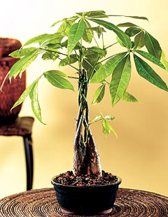 - Денежное дерево. Считается что это растение приносит удачу, отсюда и название. Денежное дерево имеет интересный, текстурный ствол и блестящие, гладкие ветви, которые добавляют тропическое ощущение к любому декору. Это растение не требует большого внимания и хорошо сочетается с ярким и средним освещением. Уроженец Мексики и Южной Америки, оно может вырасти до 20 метров в высоту на открытом воздухе, но остаётся в пределах 1 метра в помещении и предпочитает слегка влажную почву.