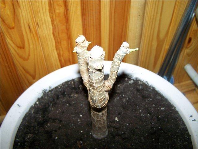 - После процедуры цветочный контейнер перенести в тёмное место и не увлажнять до тех пор, пока на нем не появятся новые листочки. Сколько почек активизируется, столько верхушек будет у омоложённого растения.