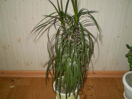 У меня дома растет Драцена Деремская, внимания к себе практически не требует и выглядит просто замечательно. Ствол у нее довольно высокий, в этом году хочу пересадить ее в более большой горшок.