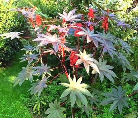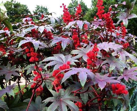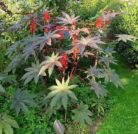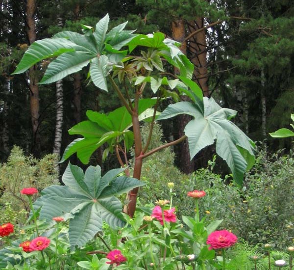 С помощью клещевины можно создать у себя на участке настоящий африканский пейзаж. Но при этом следует помнить, что при посадке и уходе за касторовым деревом необходимо соблюдать осторожность и не принимать никакие его части в пищу.