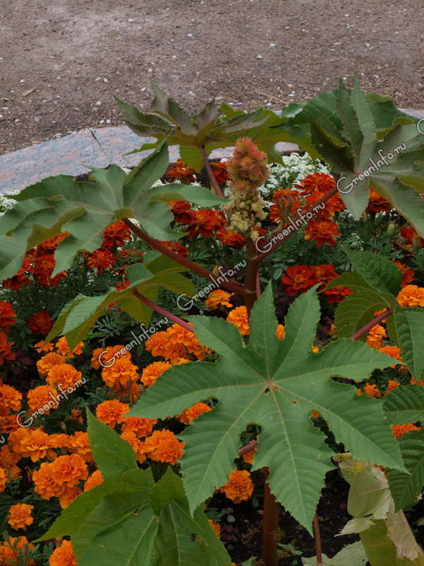 Не рекомендуется высаживать клещевину на одной клумбе с другими видами высоких, а особенно цветущих кустов. В этом случае можно не увидеть ее привлекательность.