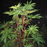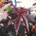 - Клещевина индийская или камбоджийская вырастает до 120 см, имеет почти черный ствол и темные листья.