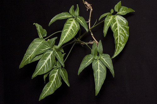 - Сингониум Вендланда – лазающая лиана, вырастающая до 2 м в высоту. Листья насыщенного зеленого цвета с серебристой жилкой по центру. Поверхность у листьев бархатистая. При обитании в затемненных местах покрывало листа довольно темное, а при длительном попадании яркого света превалируют красно-коричневые оттенки.