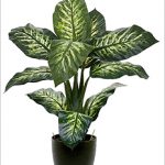 - Диффенбахия прелестная отлично приживается в домашних условиях, неприхотлива. Очень красивое растение высотой больше метра с большими зелёными листьями и с белыми полосками на прожилках.