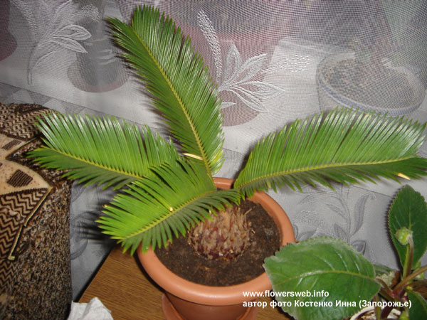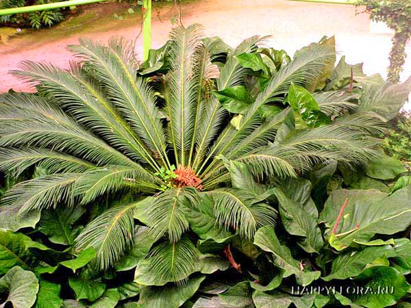 Цветок саговника не нуждается в большом количестве влаги. В летнее время растению достаточно однократного полива в неделю, зимой цикас поливают раз в две недели.