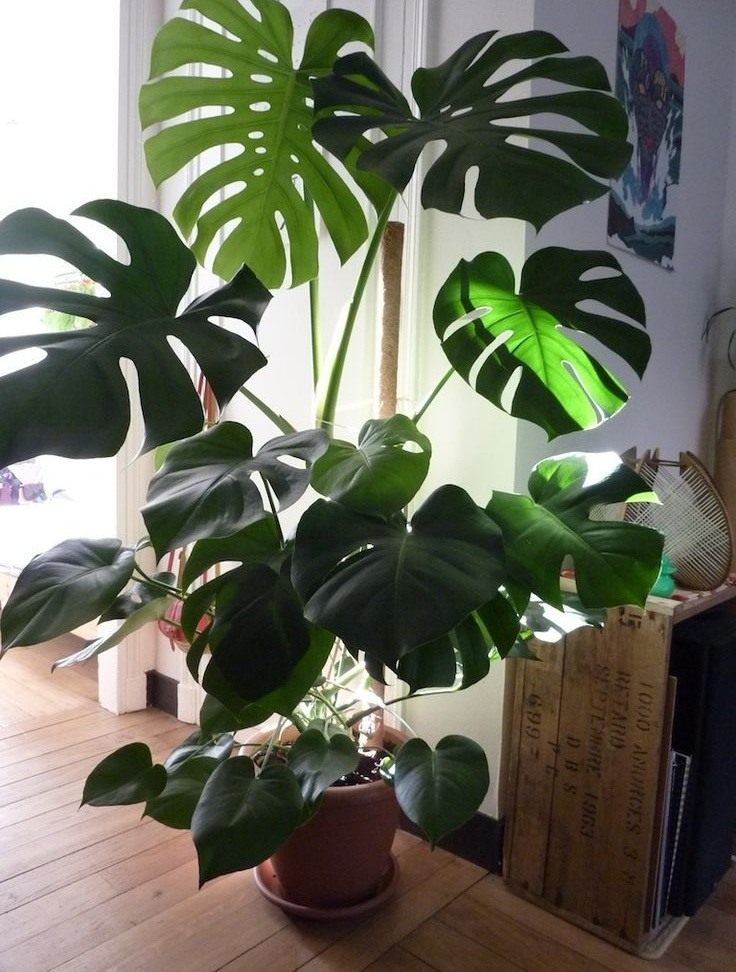 Отличительная черта этого домашнего растения – его неприхотливость. Именно поэтому комнатные растения монстеры с красивыми крупными рассечёнными листьями столь популярны. Однако следует учитывать, что монстера даже в жилом помещении может вырастать до 3-4 метров в высоту. Наилучшие места – просторные холлы с высокими потолками или офисные помещения. Можно использовать разросшиеся монстеры для создания затенения.