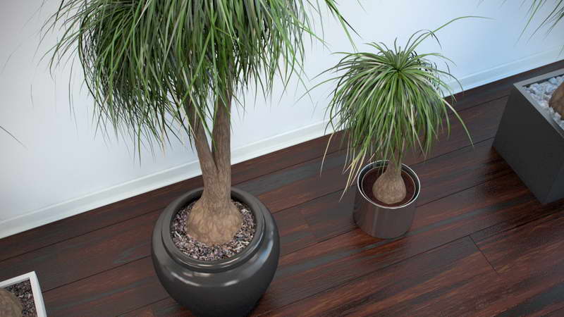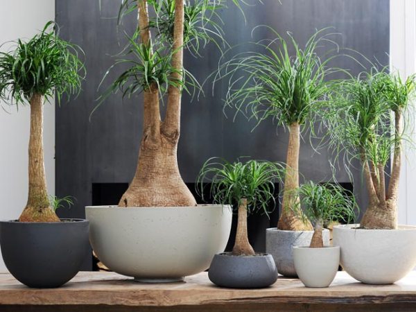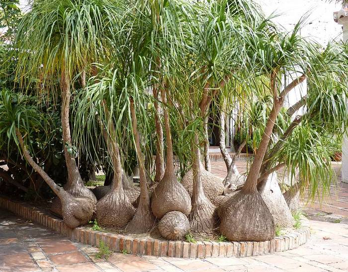 Комнатные разновидности нолины обычно невысокие. Ствол нолины расширяется книзу и напоминает форму бутылки или ноги слона. Такое расширение имеет в естественных условиях произрастания вполне практическое назначение – оно выступает в роли резервуара для воды и позволяет растению благополучно проживать длительные периоды засухи.