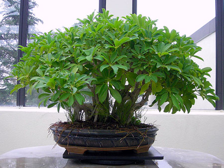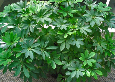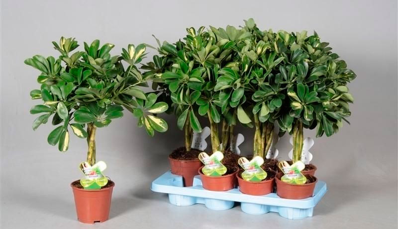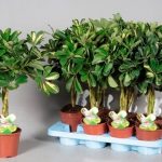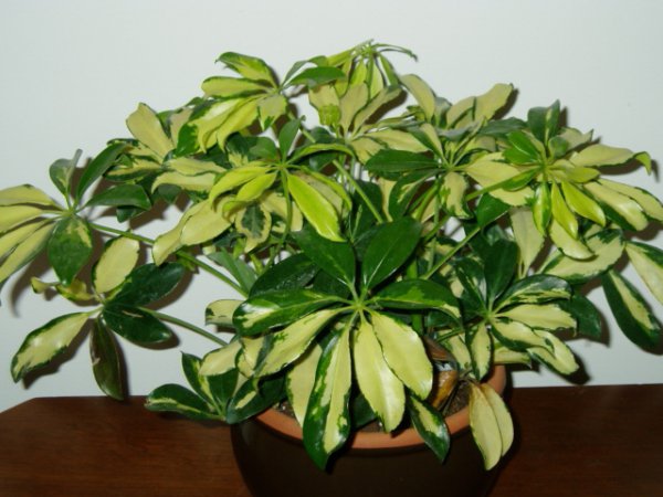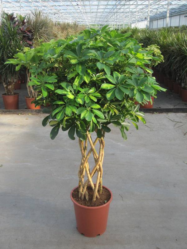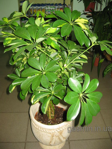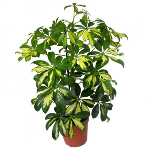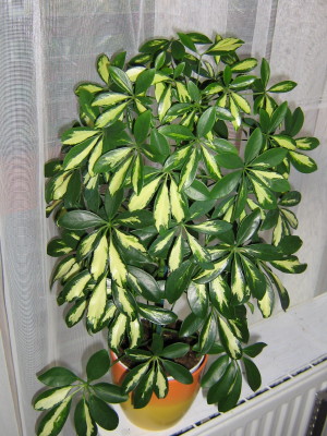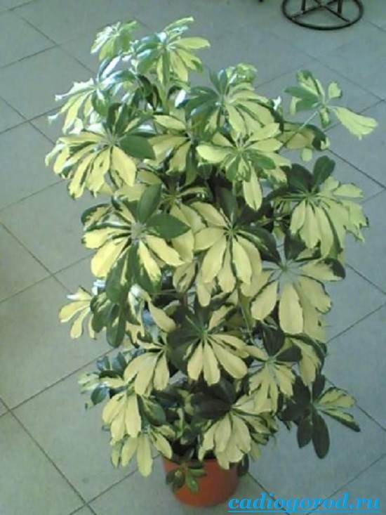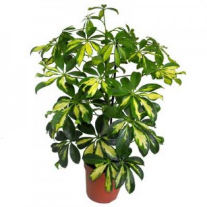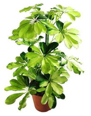 - Древовидная шеффлера — самый распространенный вид, пользуется популярностью среди цветоводов.