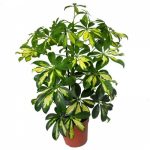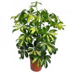 - Шефлера пальчиковая — прекрасный, невысокий куст идеально подходит для выращивания в квартире.