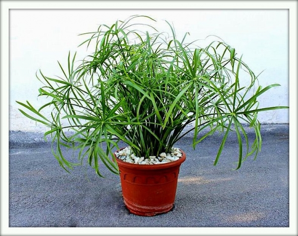 Циперус требует регулярной обрезки, старые засохшие стебли удаляют для сохранения декоративности. Вскоре на их месте появляются новые молодые побеги, растение довольно быстро растет и обновляется.