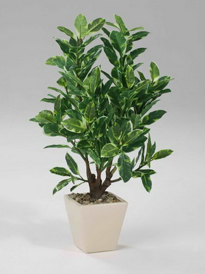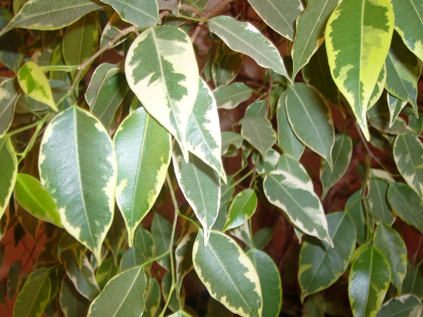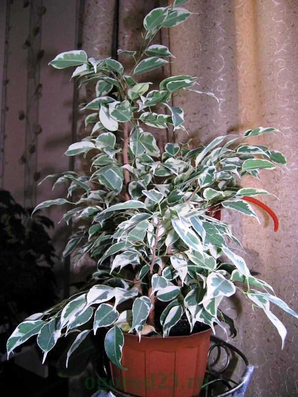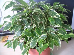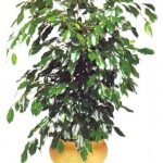 Фикус Бенджамина. Ветви этого растения обладают высокой гибкостью, сплетая их, можно образовать интересную фигуру. Требует регулярной стрижки, в противном случае теряет свой внешний вид. Не любит сквозняков. Зимой происходит сброс листьев. Для него очень нежелательны обжигающие лучи солнца.- Каучуконосный. Он менее требователен. Может существовать в неосвещенном помещении, не нуждается в регулярном поливе и спокойно относится к наличию сквозняков.