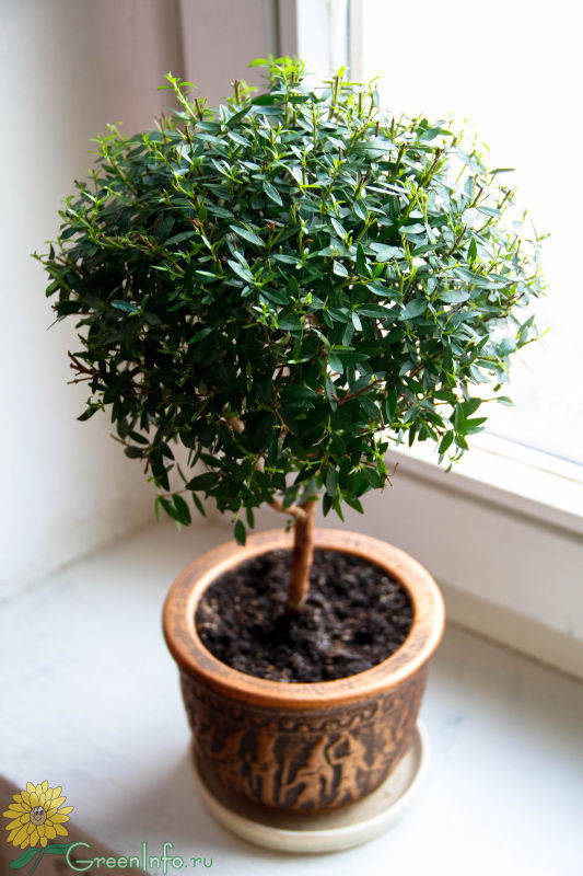 Вполне могут подойти специальные почвы для цветов или парниковая земля. Уход за миртовым деревом в домашних условиях требует бдительности и своевременного полива, почва не должна быть пересохшей, но и вода не должна застаиваться в поддоне. В качестве подкормки используют комплексное удобрение для цветов.
