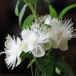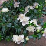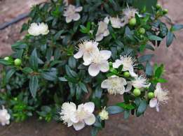 Растение начинает цвести в июле, цветки в основном располагаются в верхней части дерева, где больше всего света. Для красивого и ежегодного цветения нужно соблюдать несколько правил. Первое – не обрезать побеги, чтобы не травмировать дерево. Если есть необходимость удалить черенки, лучше сделать это, когда мирт отцветет.