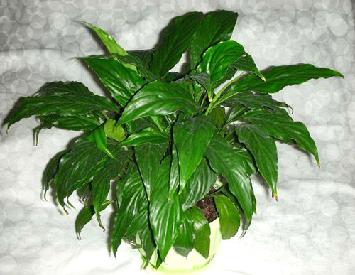 Когда у спатифиллума наблюдается чернота листьев, это означает одно — у цветка отмирает корневая система. Причинами болезни является сильное переувлажнение почвы в результате систематического полива или опрыскивание в очень прохладном помещении. Растение нужно извлечь из горшка и внимательно рассмотреть корневую систему. Далее нужно удалить отмершие корни и пересадить в новый грунт, возможно, таким образом будет спасена жизнь растения.