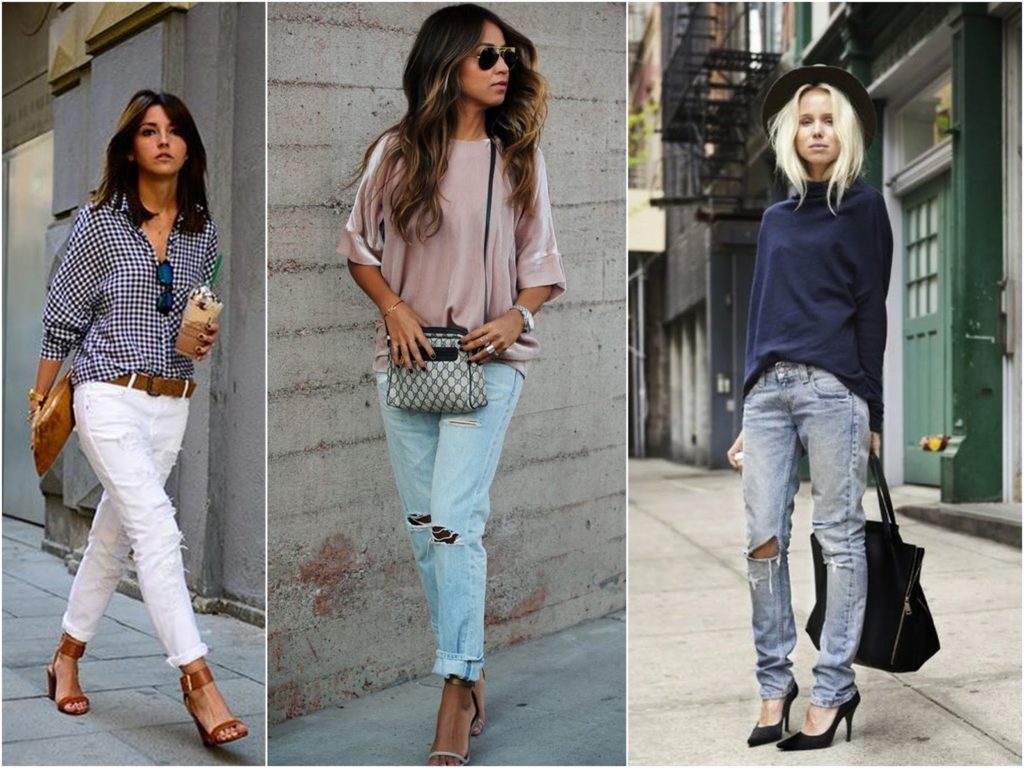 Насколько модной девушка будет выглядеть в бойфренд джинсах зависит, какой крой джинс подходит для фигуры. Некоторые девушки хорошо смотрятся в джинсах с заниженной талией. В этом сезоне все активнее в моду входит завышенная талия с заправленной внутрь футболкой или кофтой. В сезоне этого года джинсы бойфренды с карманами неактуальны, а вот яркие цвета выбирают все чаще. Необычность данной модели позволяет каждый день придумывать разнообразный образ в зависимости от сочетания джинс с блузкой, джинс с туфлями в прохладную погоду можно разнообразить образы с помощью смены свитеров и пиджаков. Сочетание с джинсовой рубашкой тоже всегда будет актуально.