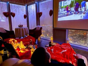 Как известно, что для того, чтобы круто провести время вдвоем, нужно чтобы все было романтическим и красивым. Здесь все будет именно таковым. Если вы захотите, то будете смотреть фильм или пить игристое вино и наслаждаться красивым видом из 62 этажа Москва Сити.