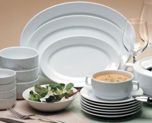 Следует выбирать белую посуду (идеально белую). Она невероятно привлекает посетителей своим блестящим видом, выглядит довольно-таки эстетично и дорого. Это куда лучше, чем подавать блюда на какой-то разноцветной тарелке. Также необходимо понимать, что посуда, которая предназначена для ресторана, должна быть больших размеров, на маленьких тарелках будет совершенно не то, будет похоже на еду, поданную в какой-то столовке. Фарфоровая и стеклянная посуда – самая походящая в данном вопросе.
