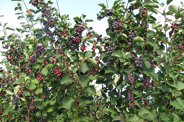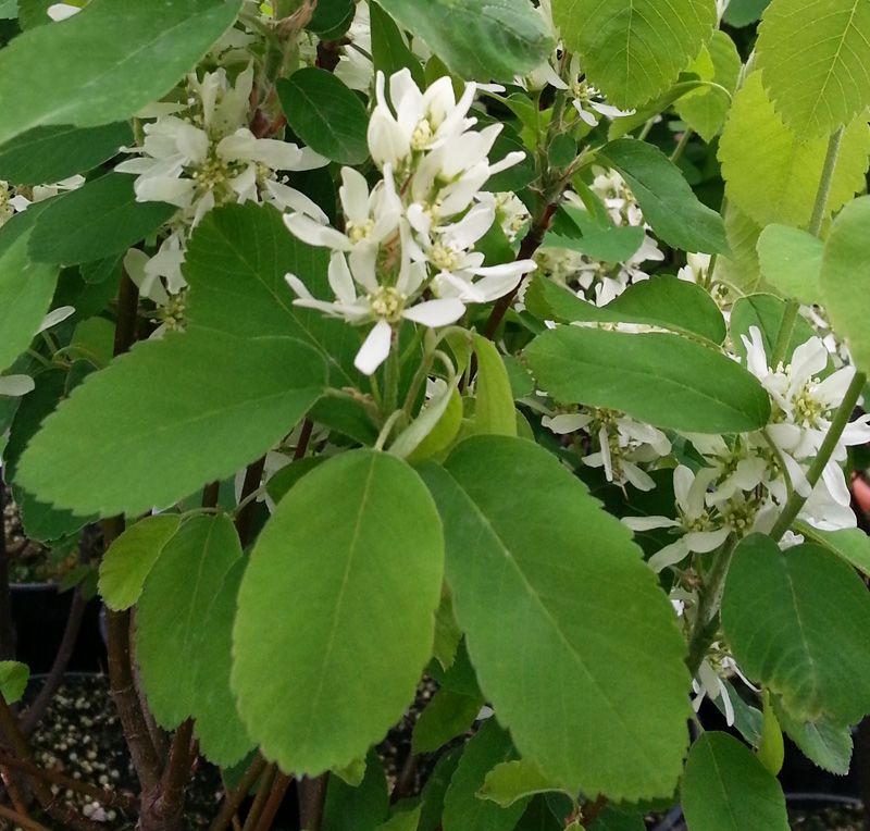 - Ирга колосистая — кустарник листопадного типа, который образует многочисленные побеги. В высоту может достигать до пяти метров и имеет довольно пушистую крону. Растение отличается зимостойкостью и морозоустойчивостью, считается устойчивым также к засушливому периоду, дыму и газу.