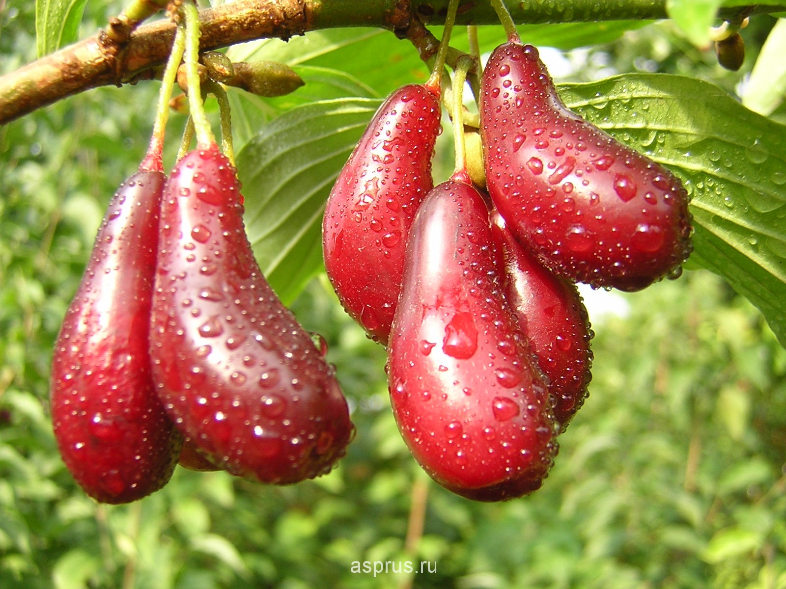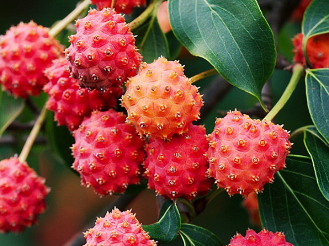 Разнообразны они и по окрасу: красные, пурпурные, розовые, черные, желтые. Их форма и цвет зависят от сорта кизила.