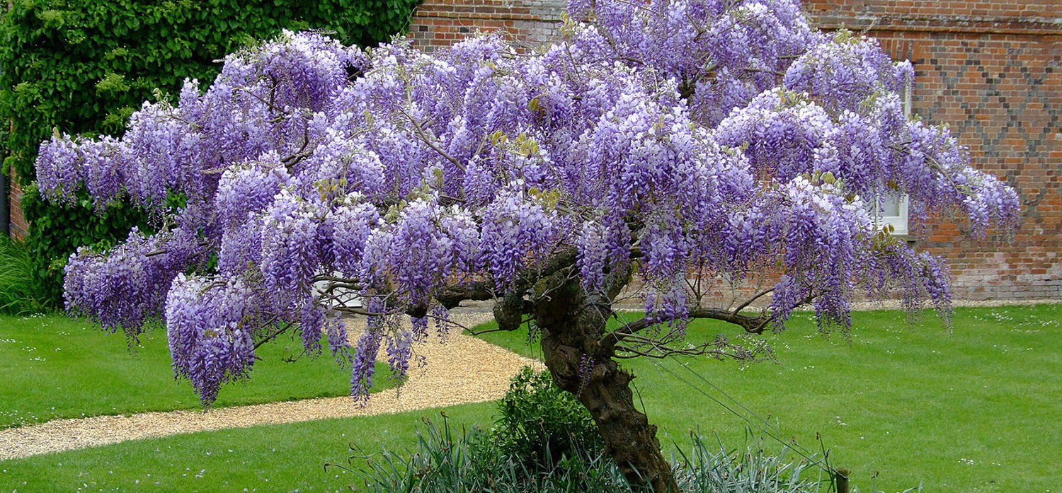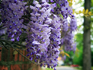 Глициния, или вистерия, растение из семейства бобовых родом из Китая. Она широко используется для вертикального озеленения приусадебных участков. Это вьющееся растение является древовидной лианой, с возрастом ее прочные ветки утолщаются и становятся похожими на стволы деревьев. В природной среде она вырастает до 15 метров в высоту, но есть и сорта комнатных глициний. Душистые цветки собраны в поникшие сиреневые или лиловые кисти длиной от 15 до 30 см, в зависимости от сорта.