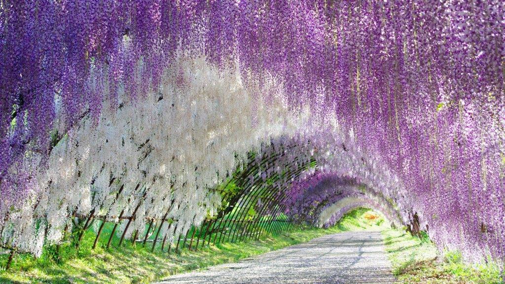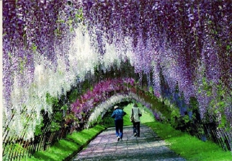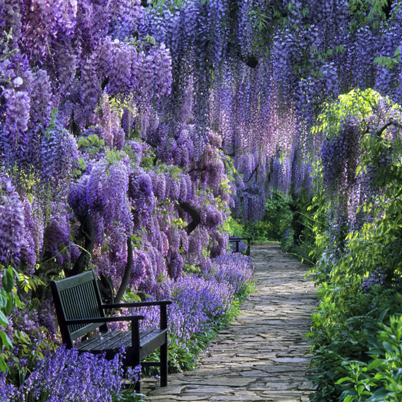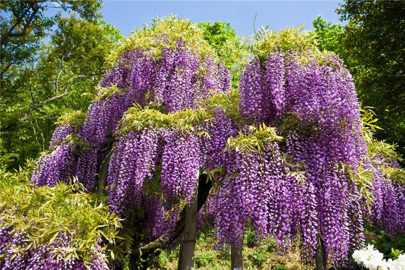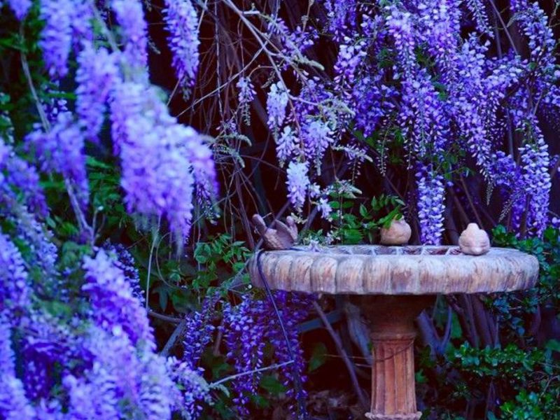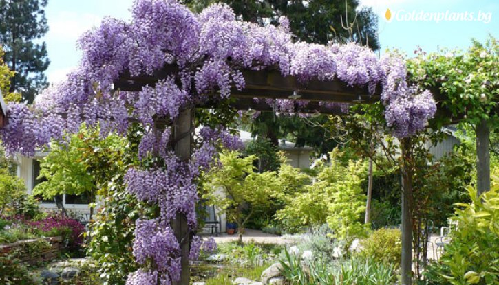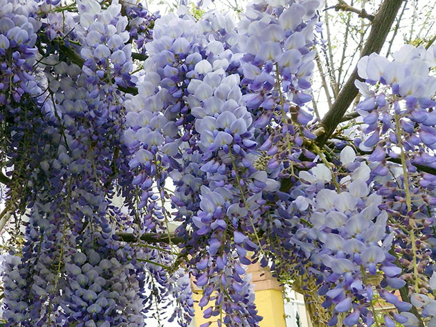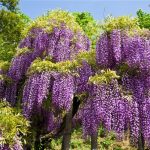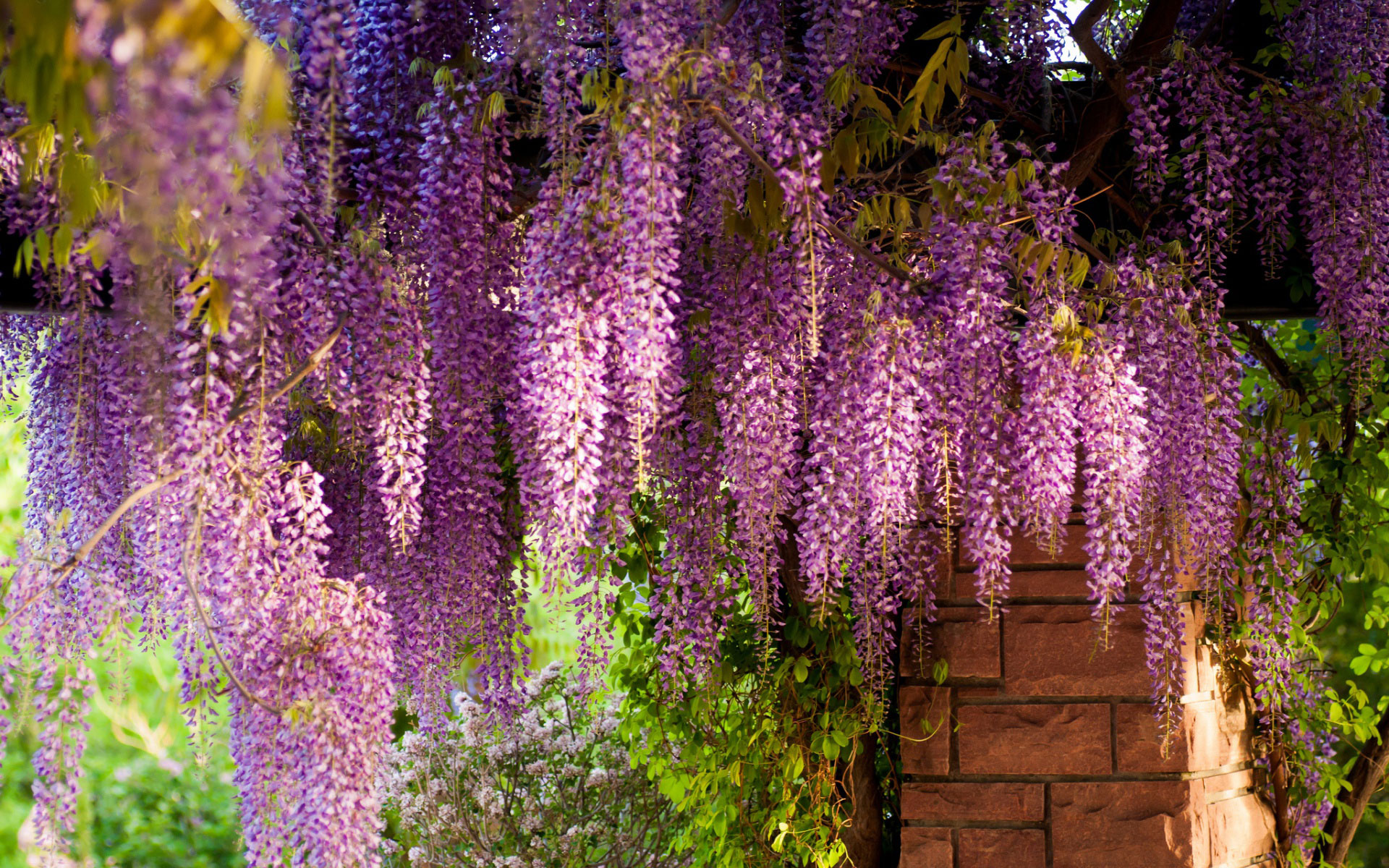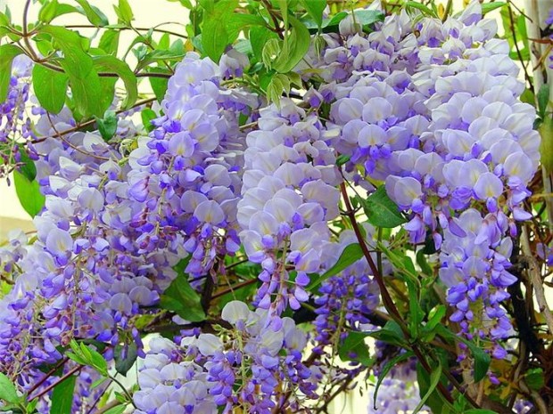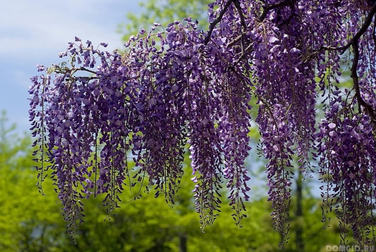 Садоводы-любители и ландшафтные дизайнеры широко используют в декоративном цветоводстве красивоцветущую ароматную лиану глицинию, или вистерию. Ее цветение – это водоворот ярких красок, когда длинные кисти – фиолетовые, голубые, белые и розовые гроздья, издающие сладковатый аромат — неудержимым водопадом устремляются вниз. Ведь не зря сдержанные японцы сравнивают сад с цветущими глициниями с прогулкой по раю.
