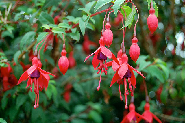 Многолетние цветы фуксии относятся к семейству Кипрейные. В природе она растет в виде кустарника и обитает в Центральной и Южной Америке, а также Новой Зеландии.