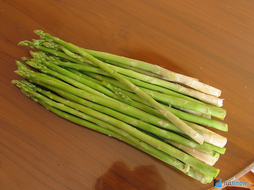 Этот овощ нельзя хранить длительное время. Побеги заворачивают во влажную ткань и оставляют в холодильнике. Спаржа отлично впитывает посторонние запахи, поэтому ее не стоит держать рядом с сильно пахнущими продуктами. Укладывать побеги нужно строго вертикально, в другом положении они сильно искривляются.