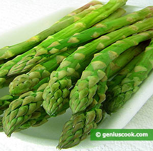 В пищу идут молодые побеги спаржи, только что появившиеся из-под земли. Если на них начинают распускаться почки, спаржа становится жесткой и непригодной в пищу. Одно растение приносит всего 9 — 12 побегов за сезон, что объясняет высокую стоимость этого овоща.
