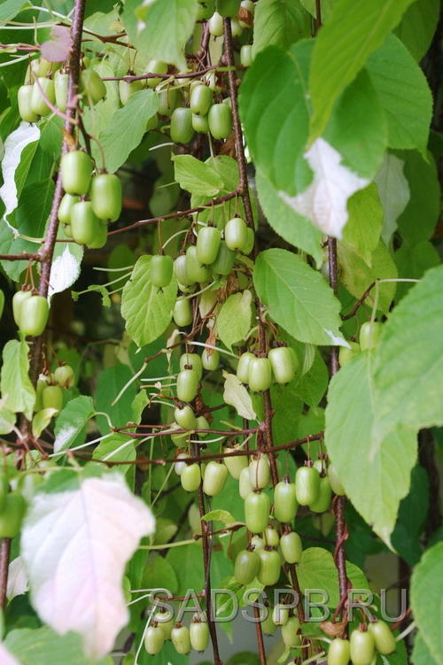 - Актинидия самоплодная. Это зимостойкий сорт, плоды которого начинают поспевать поздней осенью и имеют ароматный запах и пряный вкус. Масса созревшей ягоды около двадцати грамм, форма удлиненная, имеют ярко-зеленый цвет и сладкий вкус. Этот сорт является высокоурожайным, при правильном уходе можно собрать с каждого куста около десяти килограммов плодов.