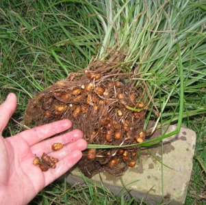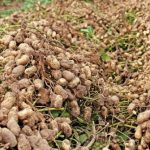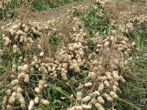 В идеале арахис собирают, когда столбик термометра устойчиво держится на отметке 10 ºC, однако важно не упустить момент и собрать плоды, пока почва не промёрзла (после этого плоды становятся горькими и непригодными в пищу). Главным сигналом к сбору урожая является пожелтение листьев. Для начала стоит выкопать и попробовать пару бобов. Если они созрели, приступают к выкапыванию. Собирать готовый арахис лучше всего при помощи вил.