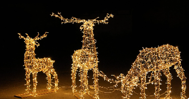 - Световые фигуры и скульптуры — объемные формы из металла, пластика или композитов, обшитые светодиодами. Они могут быть статичны или менять цветовую палитру по сценарию.