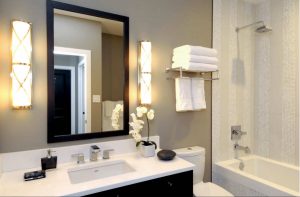 Это удобный девайс для тех, кто следит за своей внешностью. Удобно высушить волосы или нанести макияж можно в ванной комнате, если жилье не позволяет поставить туалетный столик. Чистка зубов требует контроля, потому зеркало в ванную комнату – не только красивый элемент декора, но и функциональный предмет. Без особых затрат можно зрительно увеличить размер помещения, большое зеркало в ванной поможет скрыть недостатки стены, на которой оно располагается.