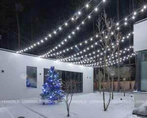 Длина гирлянд может быть разной. По стоимости 1 метр гирлянды стоит 190 гривен. Гирлянда отпускается кратно 10 метрам, при этом максимальная длина гирлянды составляет 100 метров. Лампы для гирлянды надо покупать отдельно, подойдут все модели Е27.