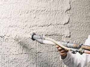 - Обеспечивается дополнительная защита стен, так как материал наносится под давлением.