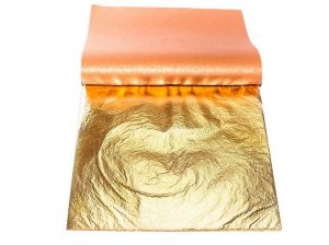 Этот материал получают путем ковки золотых пластин или пропускания их через валки. Это очень ценно, а также довольно деликатно. Обычно им управляют с помощью ножа для позолоты и щеток из норкового волоса, но вы должны быть очень осторожны, чтобы не сломать его, так как он очень тонкий! Идеально начинать использовать его, когда у вас есть некоторые навыки в этих техниках.