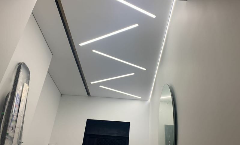 Освещение, интегрированное в натяжной потолок, также служит мощным инструментом зонирования. Скрытые светодиодные ленты могут подсвечивать отдельные зоны, создавая акценты и выделяя их из общего пространства. Такой подход не только функционален, но и добавляет интерьеру нотку современности и технологичности.