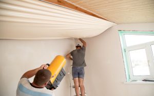 - Устанавливается потолок под ключ. Если вы не переживаете о том, что ваш потолок совершенно не подготовлен к установке высококачественного полотна, то не стоит об этом думать, ведь профессионалы сделают все сами с нуля, несмотря на подготовку комнаты к ремонтным работам;
