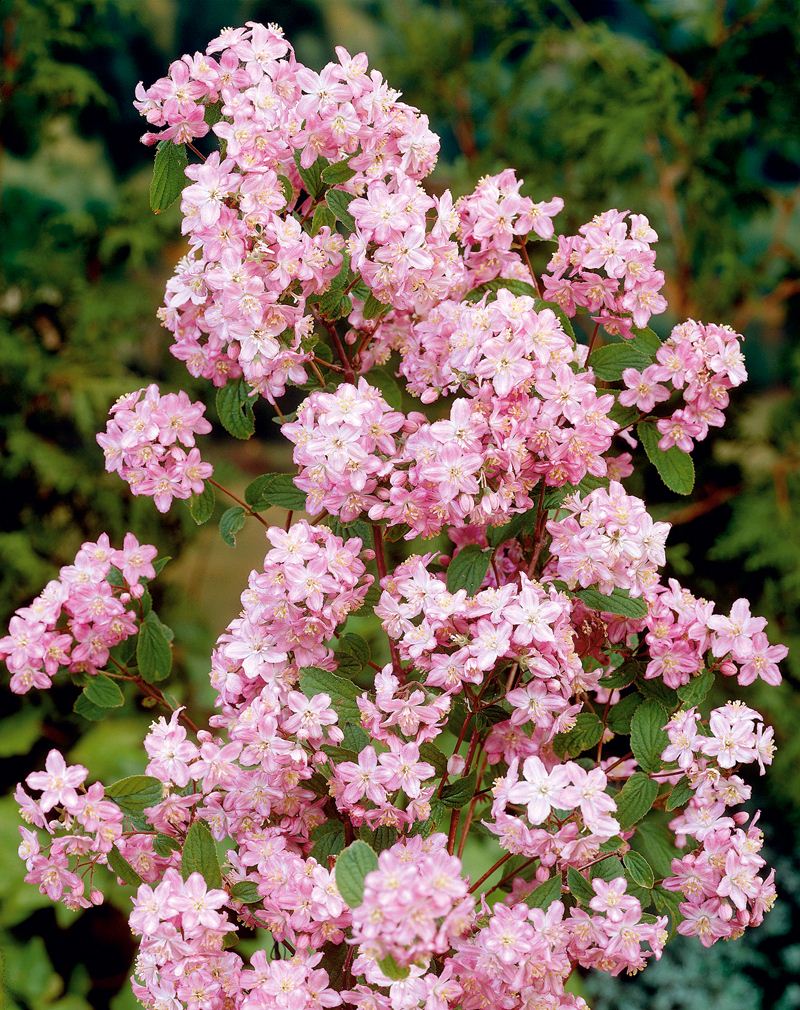 . Отличается от остальных видов розово-малиновыми закрученными цветками. Эта дейция пользуется большой популярностью у цветоводов. - Монт роуз. Высокий морозостойкий кустарник с пышными соцветиями можно часто встретить на приусадебных участках. Цветки дейции Монт роуз махровые, белые, собранные в соцветие.