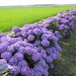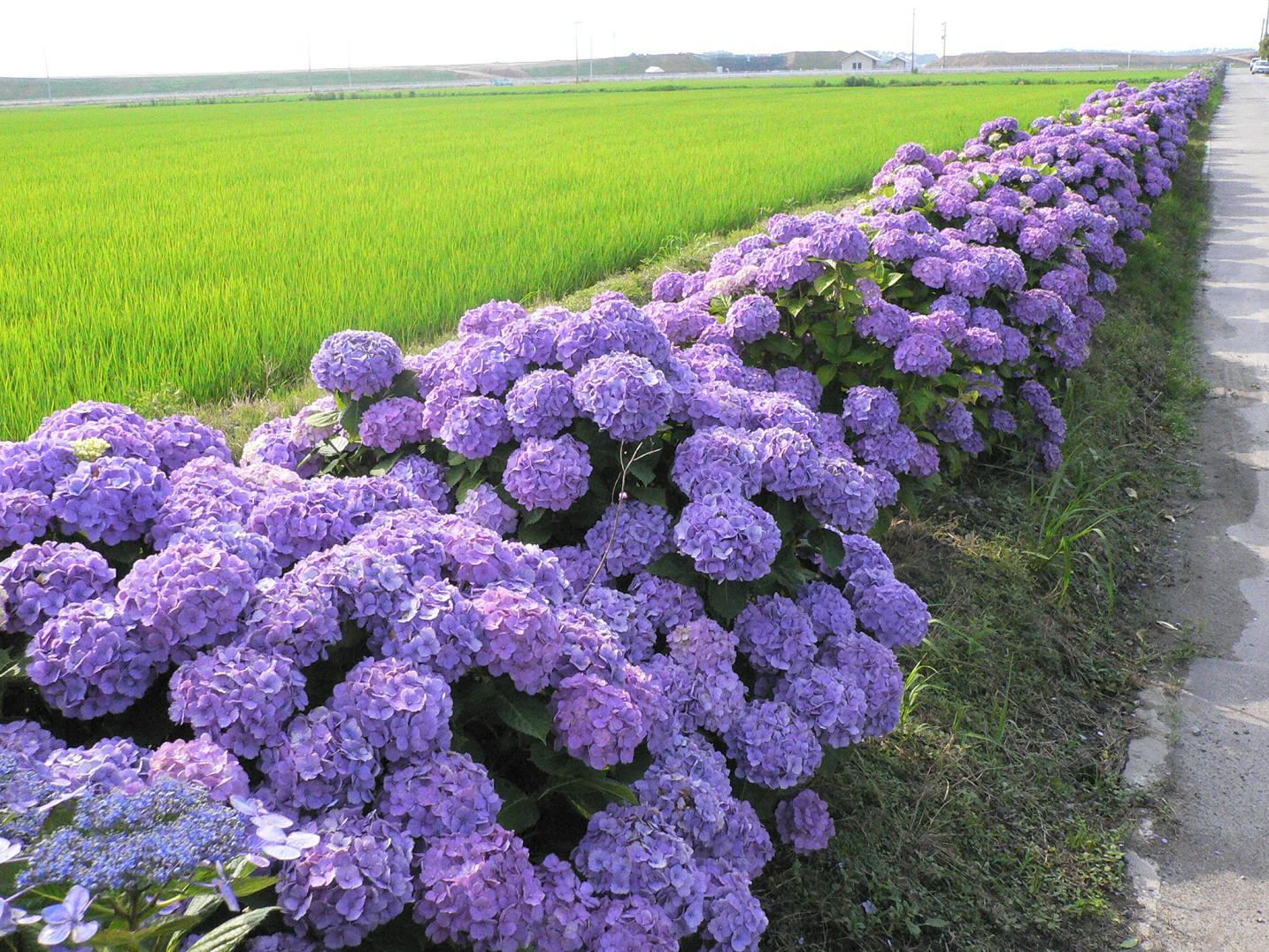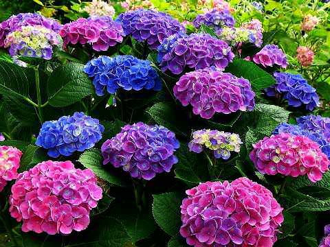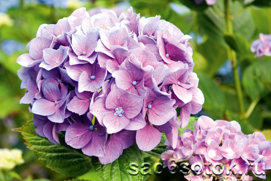 Цветы гортензии имеют массу оттенков. Наиболее привычны белая и фиолетовая. В Японии гортензию так и называют – «фиолетовое солнце». Садовые кусты этого растения иногда достигают трёх метров в высоту.