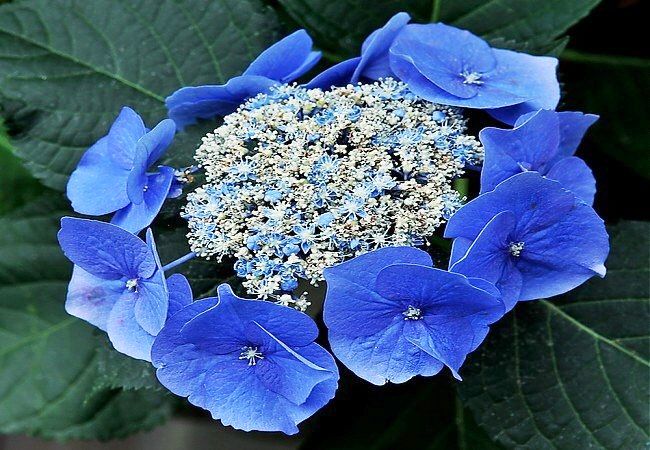 Для того чтобы вырастить голубую гортензию, поливайте грунт под кустом раствором солей железа или закопайте ржавых железных гвоздей. Таким образом получается и гортензия синяя.