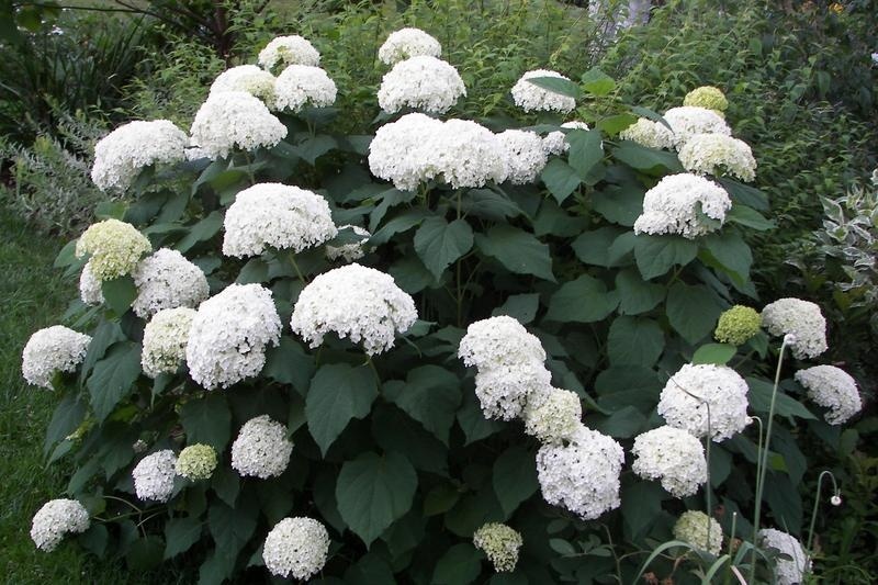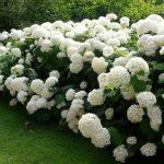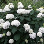 - Древовидная. Самая популярная из всех видов гортензий. Этот высокий, достигающий трёх метров кустарник можно встретить во многих садах и приусадебных участках. Цветёт древовидная гортензия белым или кремовым цветом, но сначала цветки зеленоватые. Сорта древовидной – Аннабелл, Инвизибл спирит и Грандифлора.
