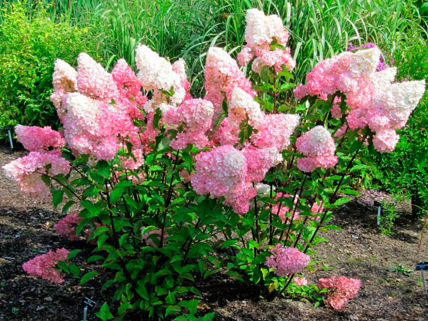 - Метельчатая. Этот вид можно назвать деревом, его рост составляет от трёх до пяти метров высотой. Живёт это растение более пятидесяти лет. У метельчатой очень необычные соцветия, сначала они окрашены в зелёный цвет, потом становятся розовыми, далее – кирпичными и снова зеленеют. Ветви быстро деревенеют, из-за чего растение приобретает вид дерева. Наиболее популярные сорта – Ванила Фрейз, Тардива и Куишу.