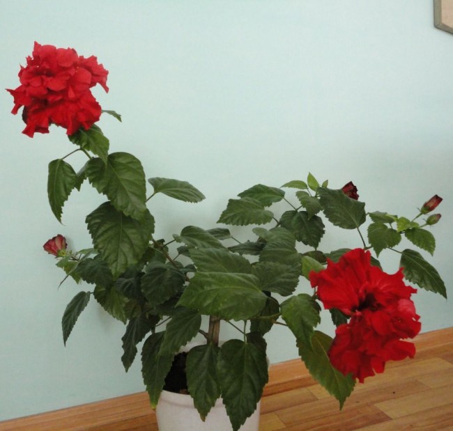 Уход за растением включает в себя соблюдение определенных условий. Например, в осеннее-зимний период гибискус предпочитает температуру +14-+15°С. Во время такой зимовки он набирается сил и потом хорошо цветет.