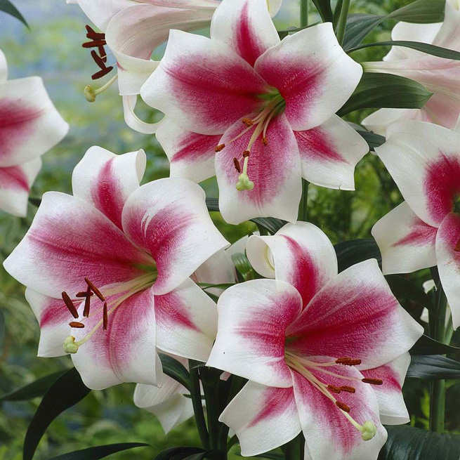 Для получения гибридов скрещивали трубчатые и восточные лилии. Огромные цветки имеют воронковидную форму и приятный запах. Обычно встречаются двухцветные и трехцветные виды разных оттенков.