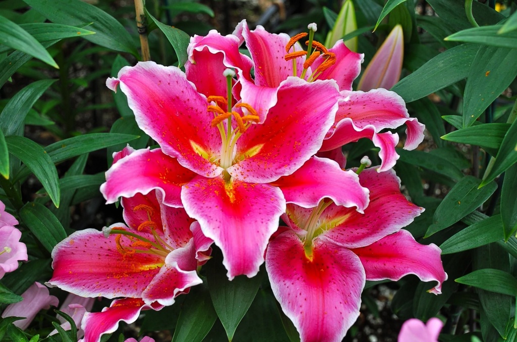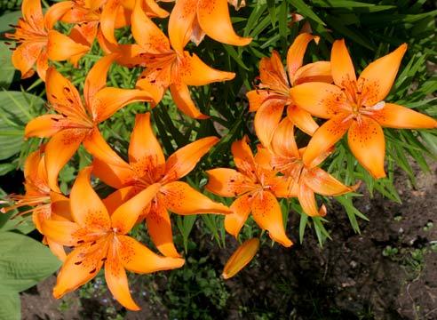 Лилии в саду всегда выделяются среди других цветов. Прекрасные цветки больших размеров и разнообразных окрасок выступают основным украшением клумб.