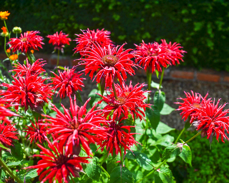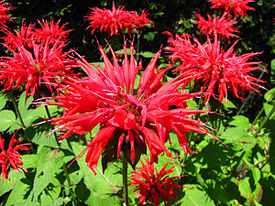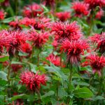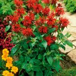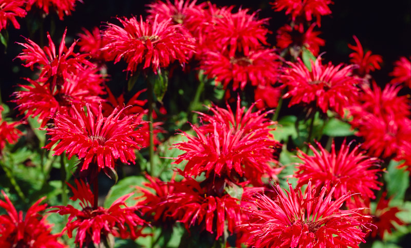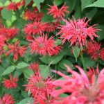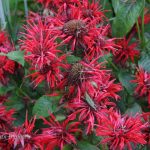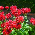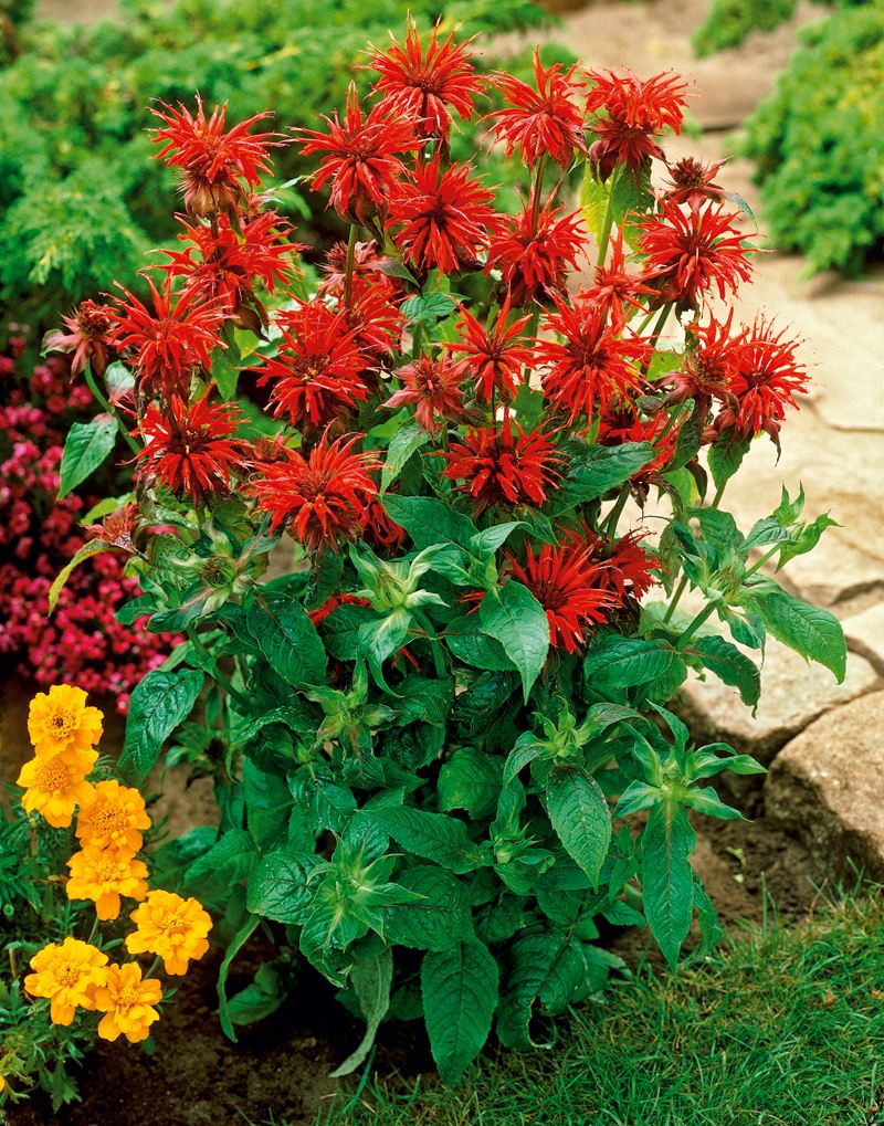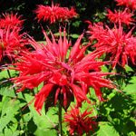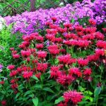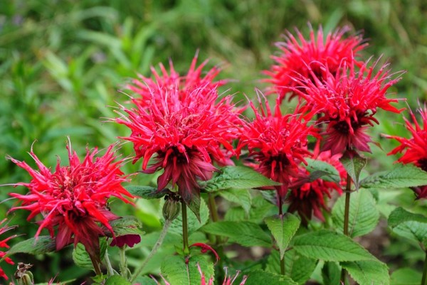 - Монарда Скарлетт. Её стебель может достигать 100 см в высоту, а крупные соцветия – 5-7 см в диаметре. Палитра цветов включает в себя в себя все оттенки красного. Цветет с июля по сентябрь. Отлично будет смотреться фоном для мелких астр, эхинацей, анемон, астильб.