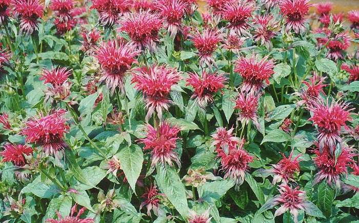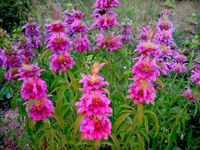 Монарда Панорама. Относится к виду двойчатых. Цветок вырастает до 6 см в диаметре на стеблях до 80 см. Окрас – самый разнообразный: от нежно-фиолетового до ярко-алого. Цветет продолжительное время, украшая летне-осенний сад. Хорошо переносит ранние посадки, срезку и долго стоит в букетах. На клумбах шикарно сочетается с декоративными злаками, особенно если высаживается вдоль стен строения в «деревенском» стиле.- Монарда Махровая сказка. Многолетник с высотой стебля 60-80 см и махровыми цветами является отличным медоносом. Его цветы, размещаясь на заднем плане рабатки, как благородный аметист, способны зажечь ярким светом поляны ясколок и маргариток, куртины камнеломок и розмарина, колосья люпинов и остролистных трав. Прекрасно стоит в срезанном виде. Сушеные листья и цветы являются ароматной добавкой к чаю.