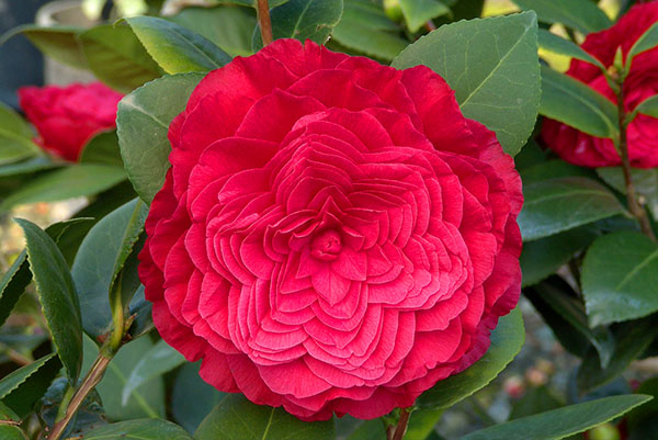 Цветовая гамма цветка японской камелии может быть белой, розовой и красной. Селекционерам удалось вывести гибриды этого сорта с прожилками на листве или небольшими пятнышками. Цветы имеют форму шара, очень похожи на такие цветы, как: