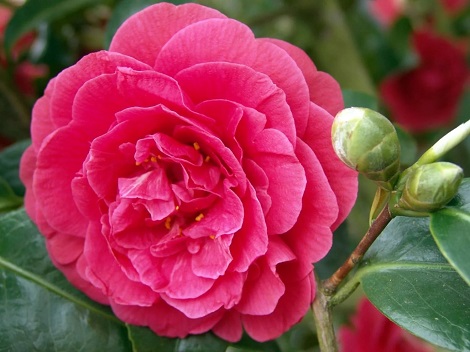 Это, наверное, самый широко известный вид цветка. Насчитывается много сортовых гибридов, которые относятся к японской камелии. Этот вид чаще всего используется для выведения новых сортов селекционерами. Очень много сортов розовой камелии относятся к виду японских. Бутоны цветка имеют разную форму:
