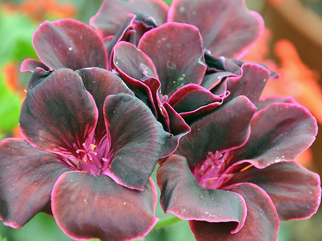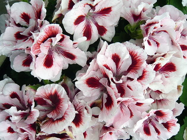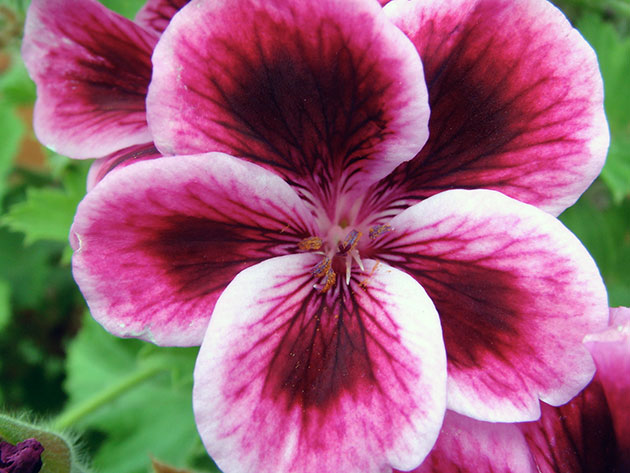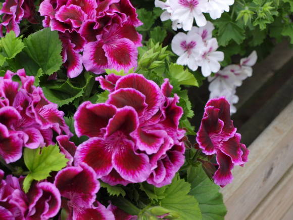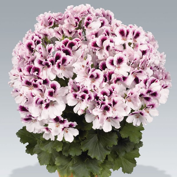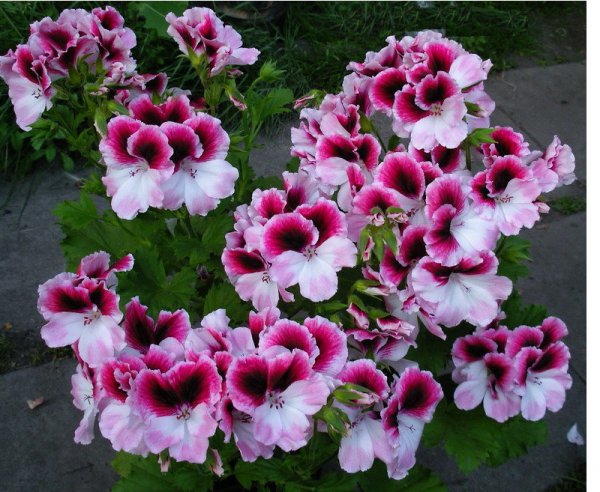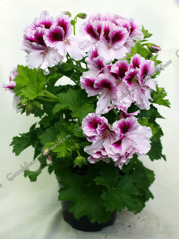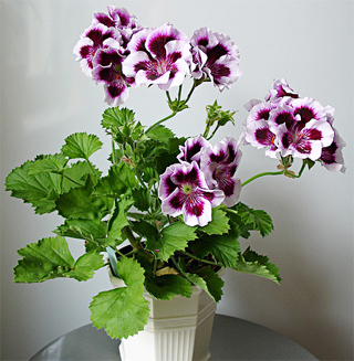 При хорошем уходе за королевской геранью можно добиться ее непрерывного цветения в течение трех-четырех месяцев. Распустившиеся цветы растения имеют множество оттенков – от белого до темно-фиолетового. В зависимости от сорта листья могут быть крупными или мелкими, но форма у всех одна. Каждый шершавый листик имеет небольшие зазубрины.